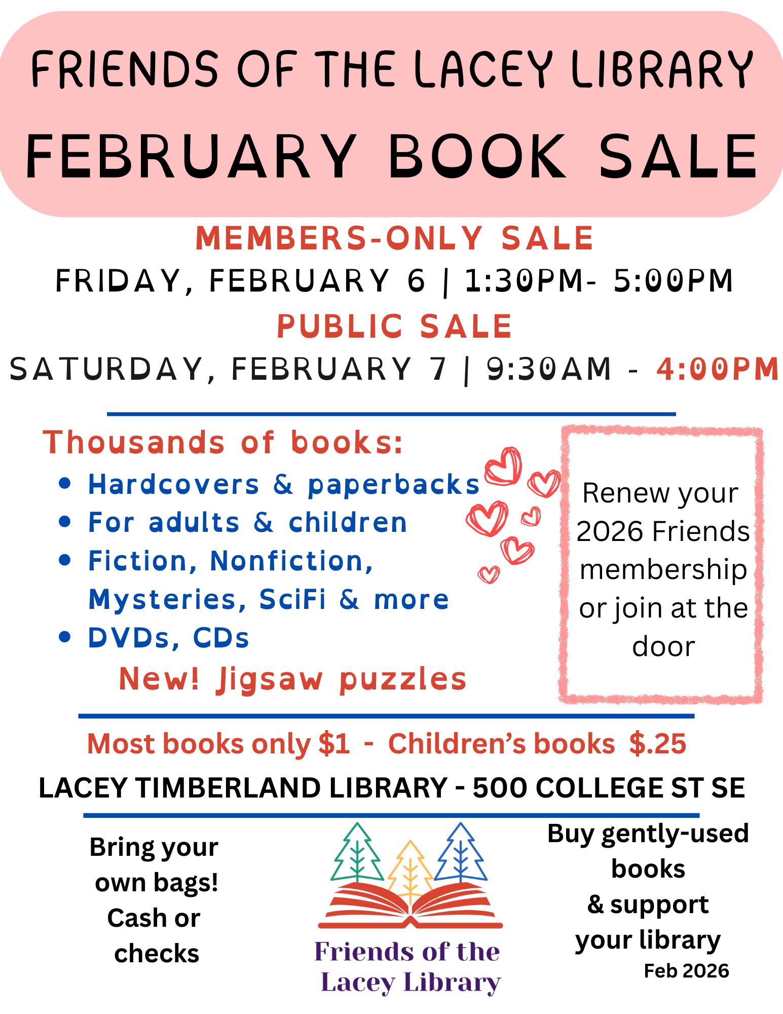 News, programs and membership information for the Friends of the Lacey Timberland Library